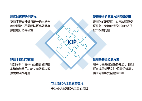基于知識(shí)產(chǎn)權(quán)保護(hù)的協(xié)同研發(fā)與IP數(shù)據(jù)管理平臺(tái) 用戶友好的IP追溯與重用系統(tǒng),支持網(wǎng) 頁端操作,提供IP版本標(biāo)定,發(fā)布,重 用,文件倉庫管理,主干分支操作,記 錄回滾,文件對(duì)比, IP加解密及授權(quán)管理等功能。